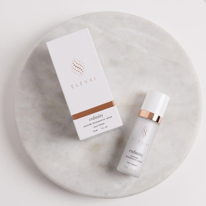 A rejuvenating serum for at-home daily use with an effective blend of ELEVAI Exosomes™ combines nano-encapsulated stem cell growth factors, powerful peptides, and the highest quality skincare ingredients available to support skin health and rejuvenation. With daily use, you will experience healthier, more balanced skin with results you can see and feel.